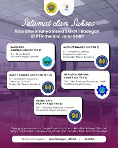 Kabar gembira datang dari keluarga besar SMKN 1 Badegan! Kami dengan bangga mengumumkan bahwa...