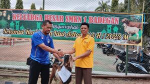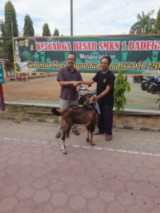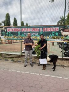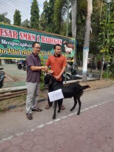 SMKN 1 Badegan melaksanakan kegiatan penyembelihan hewan qurban yang diselenggarakan pada hari Sabtu, 1 Juli 2023. Pada penyelenggaraan kali ini, hewan yang diqurbankan terdiri dari 3 (tiga) ekor sapi, dan 5 (lima) ekor kambing yang berasal dari kelompok qurban pegawai SMKN 1 Badegan.